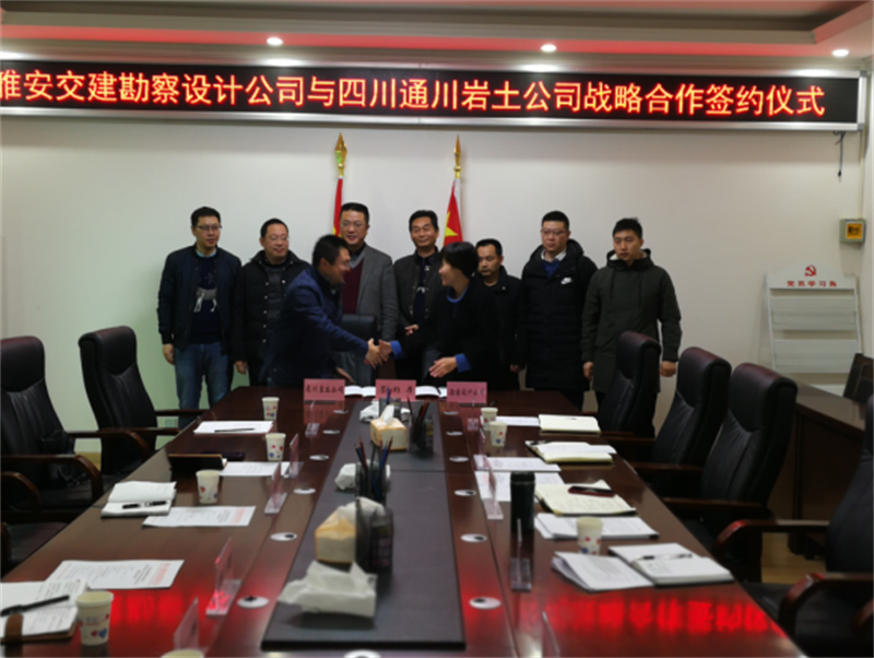 3月7日,雅安交建集團勘察設(shè)計有限公司與四川省通川巖土工程技術(shù)開發(fā)有限責(zé)任公司就公路行業(yè)領(lǐng)域公路工程(勘察、設(shè)計)、地質(zhì)災(zāi)害治理(勘查、設(shè)計)等業(yè)務(wù)范圍內(nèi)的各個方面展開多層次、全方位的合作洽談,并簽訂了戰(zhàn)略合作協(xié)議。集團公司副總經(jīng)理、勘察設(shè)計公司執(zhí)行董事兼總經(jīng)理丁春、四川省交通運輸廳公路規(guī)劃勘察設(shè)計研究院經(jīng)營處處長邱毅、四川省通川巖土公司總經(jīng)理牟琦等相關(guān)人員出席了簽約儀式。