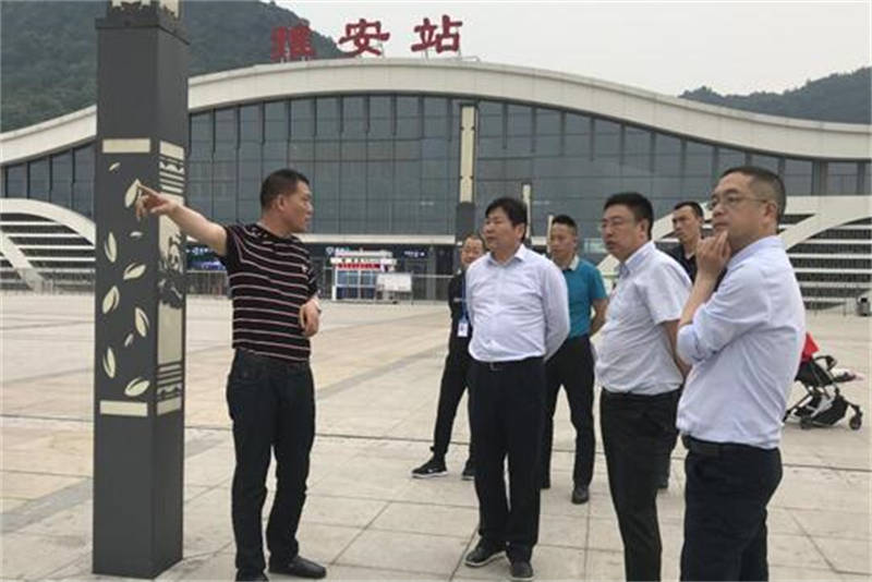 在雅安火車(chē)站站前廣場(chǎng),朱濤一行詳細(xì)了解了行李滑道建設(shè)項(xiàng)目、地下停車(chē)場(chǎng)、安全提示標(biāo)識(shí)等方面的情況,并聽(tīng)取了簡(jiǎn)智勇就相關(guān)事宜的匯報(bào)。