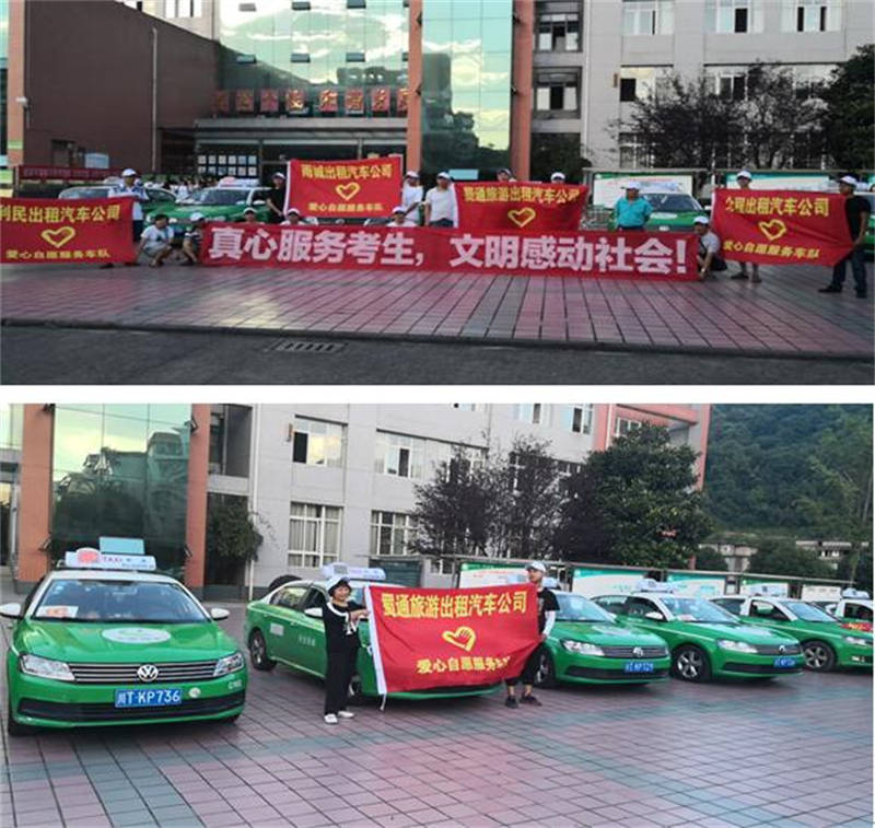 2019年高考到來之際,為大力弘揚(yáng)“奉獻(xiàn)、友愛、互助、進(jìn)步”的志愿服務(wù)精神,蜀通公司派出部分出租車、公交車免費(fèi)為高考學(xué)生服務(wù),助力雅安考生順利參加高考。