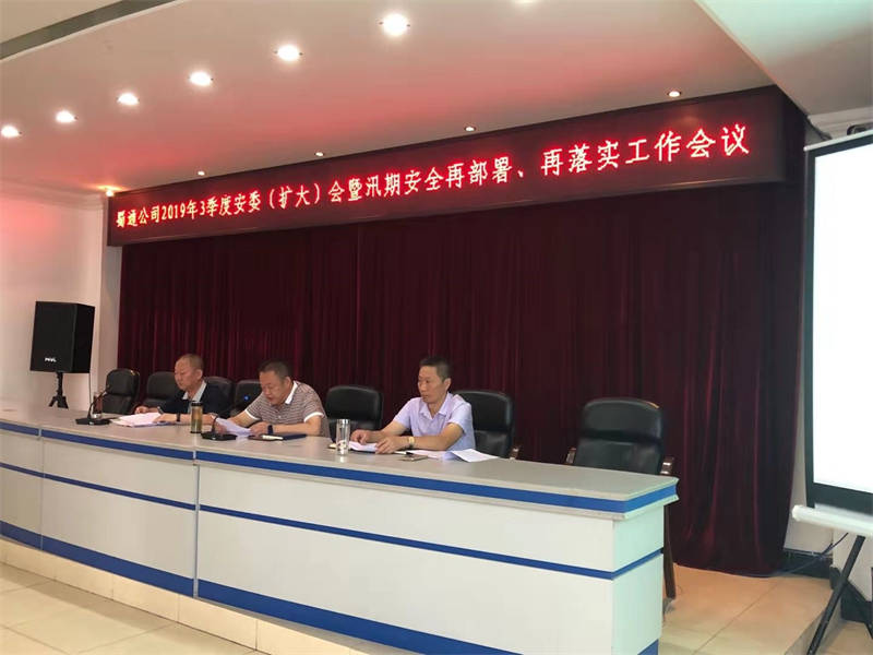 2019年7月23日,蜀通公司黨委副書記、總經(jīng)理、安委會主任余輝在公司機關(guān)會議室主持召開了2019年三季度安委(擴(kuò)大)會暨汛期安全工作再部署、再落實工作會議。公司安委會成員及各基層安全二、三責(zé)任人共計40人參加此次會議。