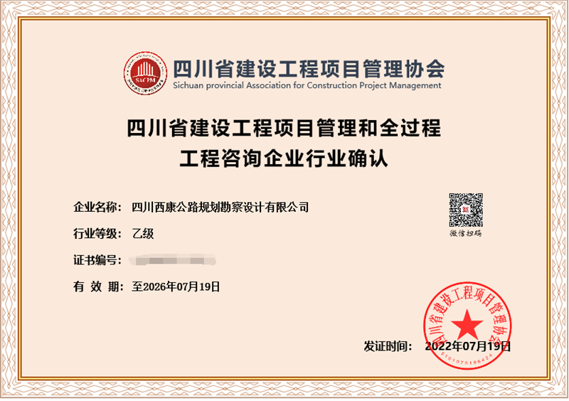 日前,經四川省建設工程項目管理協(xié)會評審,交建集團四川西康公路規(guī)劃勘察設計有限公司獲得“四川省建設工程項目管理和全過程工程咨詢企業(yè)行業(yè)乙級資格”確認,成為四川省內為數不多獲得開展全過程項目管理和咨詢資質企業(yè)之一。