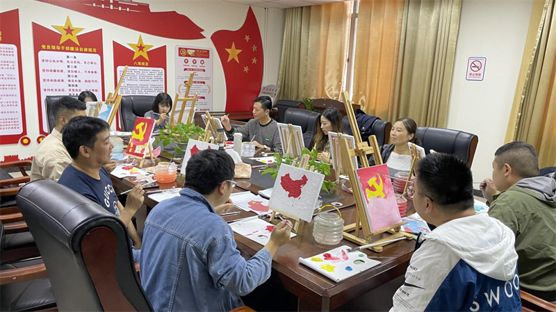 活動中,大家興致勃勃地領取了畫筆、顏料、油畫框等工具,即刻投入到繪畫狀態(tài)中。他們一筆一劃仔細斟酌、認真構(gòu)思,充分發(fā)揮想象,通過精心的布局、豐富的色彩,繪出自己熱愛黨的心聲,勾勒出紅色印記,用色彩點燃愛國情懷,為迎接黨的二十大勝利召開獻上一份真摯的祝福。