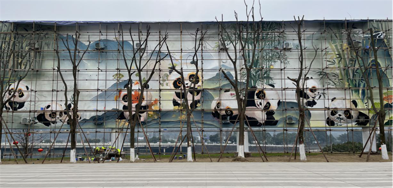 北緯30度公園LED大屏美化項(xiàng)目繪圖緊緊圍繞“川藏鐵路第一城,綠色發(fā)展示范市”總體目標(biāo),采用簡約又富有內(nèi)涵的國畫水墨風(fēng)格,將9只形態(tài)生動(dòng)的大熊貓與綠意盎然的草地樹林、婉轉(zhuǎn)流長的河流江水、蜿蜒曲折的道路完美融合,不僅展現(xiàn)了大美雅安的人文景觀和自然風(fēng)光,更樹立了人與自然和諧共處的生態(tài)理念。是雅安交建集團(tuán)深入學(xué)習(xí)貫徹黨的二十大精神,全面落實(shí)省委十二屆二次全會(huì)、市委五屆二次全會(huì)部署,嚴(yán)格按照2022年12月20日市委書記李酌在調(diào)研雅州大道沿線片區(qū)城市更新改造項(xiàng)目施工現(xiàn)場的有關(guān)指示要求及市委宣傳部的工作安排,奮力推動(dòng)文明城市創(chuàng)建全面提質(zhì)提速提效的有力舉措之一,將有效助力文旅融合、提升城市吸引力。