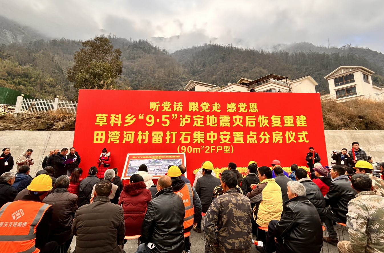 22日上午,草科鄉(xiāng)田灣河村雷打石集中安置點分房儀式拉開序幕。該鄉(xiāng)的三個集中安置點均由雅安交建路橋承建,前兩個集中安置點已經(jīng)分房,今天分房的點位是最大的一個集中安置點。該集中安置點共建設(shè)36棟111戶房屋,從2022年12月進(jìn)場啟動拆遷、場平工作以來,雅安交建路橋克服場地巨石拆除難度大、汛期道路塌方斷道等難題,加班加點搶抓工期。