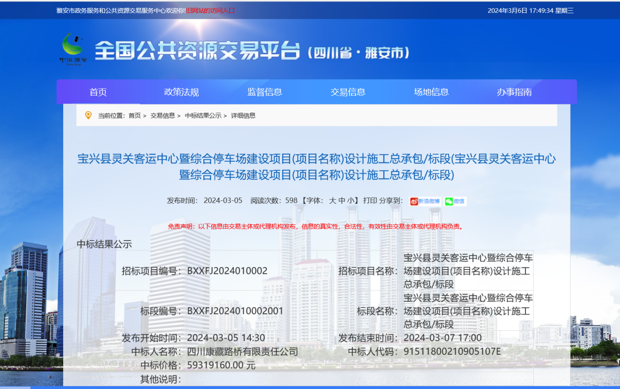 日前,雅安交建集團(tuán)康藏路橋公司中標(biāo)寶興縣靈關(guān)客運(yùn)中心暨綜合停車場建設(shè)項(xiàng)目,取得2024市場開發(fā)“開門紅”。