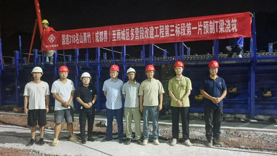 首片預(yù)制T梁的成功澆筑,標志著國道318名山區(qū)黑竹(成都界)至雨城區(qū)多營段改建工程三標段建設(shè)取得重要階段性成果,為實現(xiàn)年度目標注入強大動力,為推動地區(qū)交通發(fā)展建設(shè)貢獻力量。