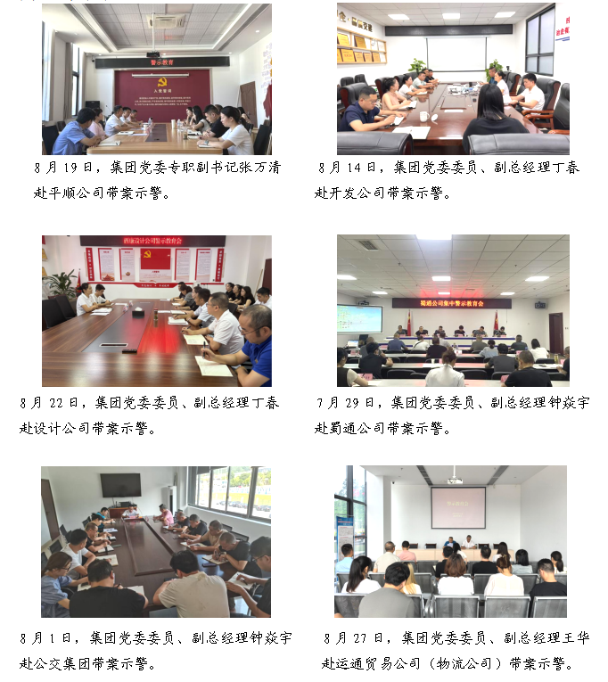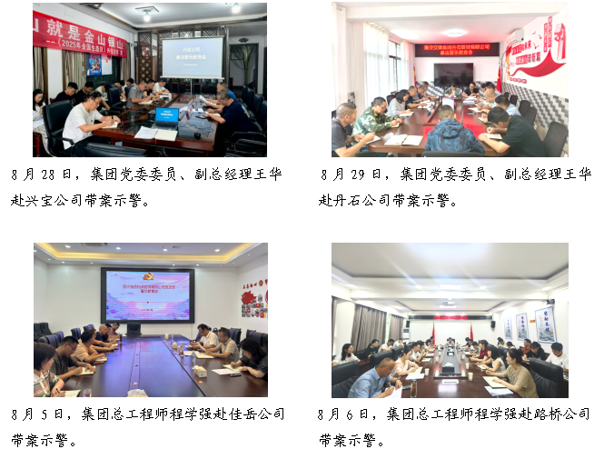 近期,雅安交建集團(tuán)組織開(kāi)展警示教育活動(dòng),集團(tuán)領(lǐng)導(dǎo)班子成員深入分管聯(lián)系的子公司“帶案示警”,通過(guò)專(zhuān)題學(xué)習(xí)今年駐市交建集團(tuán)紀(jì)檢監(jiān)察組查處的六起典型案例通報(bào)、剖析違紀(jì)違法案例等形式,推動(dòng)紀(jì)法教育、廉潔從業(yè)走深走實(shí),引導(dǎo)黨員干部職工養(yǎng)成在受監(jiān)督和約束的環(huán)境中工作生活的習(xí)慣,做到既勤又廉、遵規(guī)守紀(jì)依法,讓“心有所畏、行有所止”成為日常自覺(jué)。