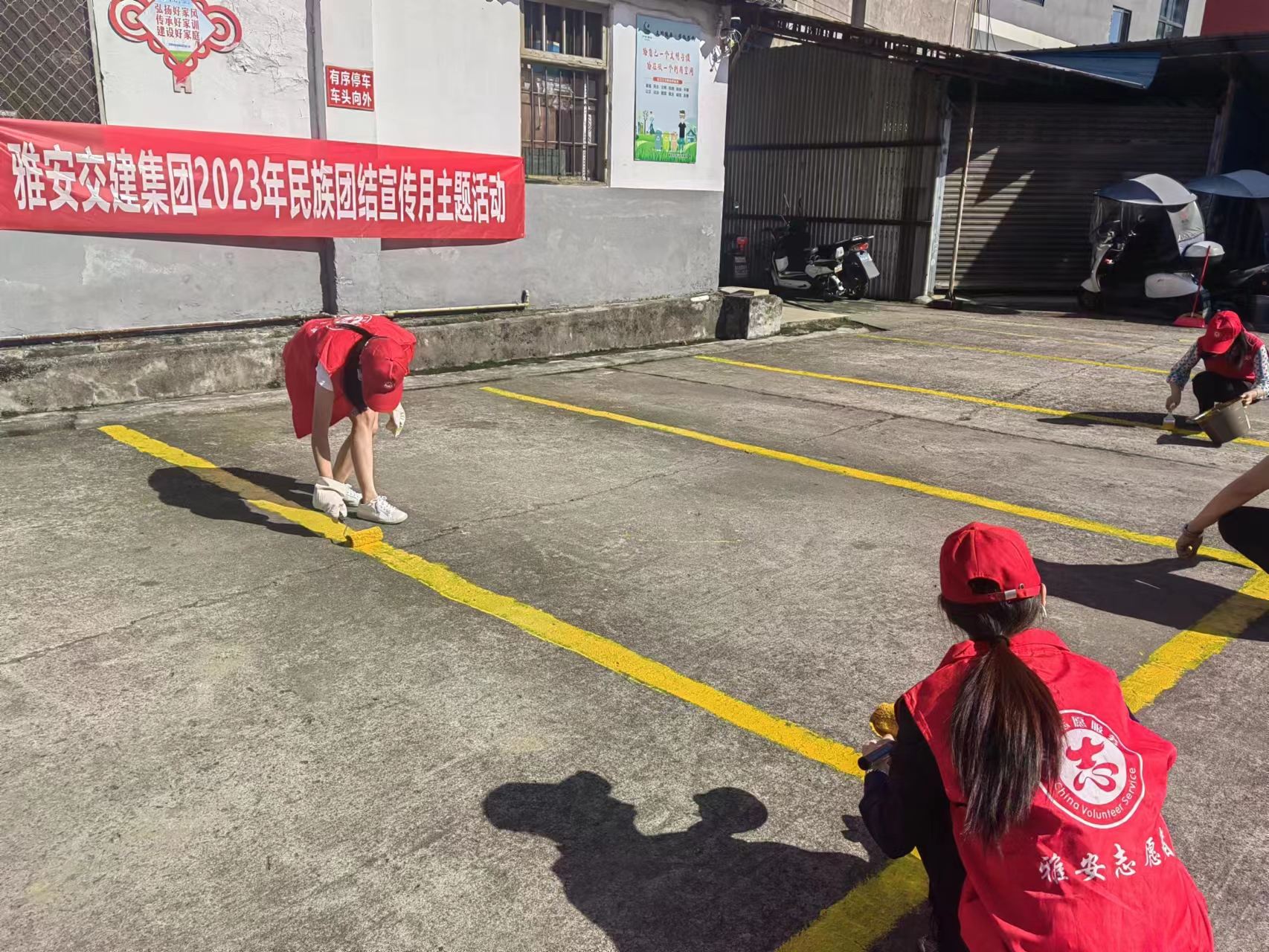 活動現場分宣傳講解、上門服務、衛(wèi)生清潔、停車場油漆添補4個小組。通過發(fā)放宣傳資料、現場答疑解惑、衛(wèi)生死角清掃、停車線添補等活動,向小區(qū)住戶、街道過往市民、車站乘客等群眾宣傳民族團結示范市創(chuàng)建工作相關問題和民族團結相關知識,進一步提升群眾對民族團結進步的認識,激發(fā)居民促進共同繁榮發(fā)展的主動意識,攜手推進民族團結進步創(chuàng)建,助力雅安市創(chuàng)建民族團結進步示范市工作。