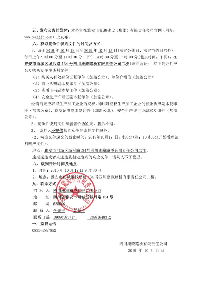 四川康藏路橋有限責(zé)任公司國道351線磽磧至夾金山段路面改造工程防護網(wǎng)采購競爭性談判公告