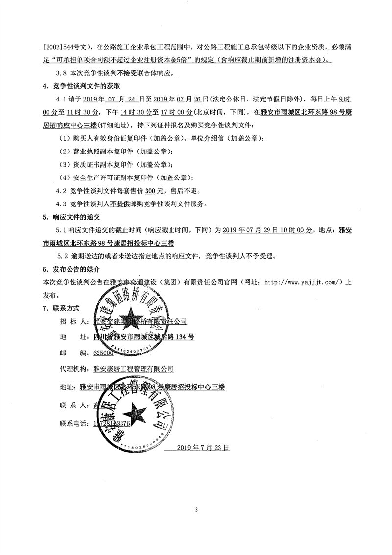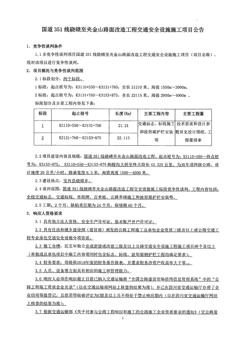 雅安交建集團(tuán)路橋有限責(zé)任公司國道351線磽磧至夾金山段路面改造工程交通安全設(shè)施施工項(xiàng)目競(jìng)爭性談判公告