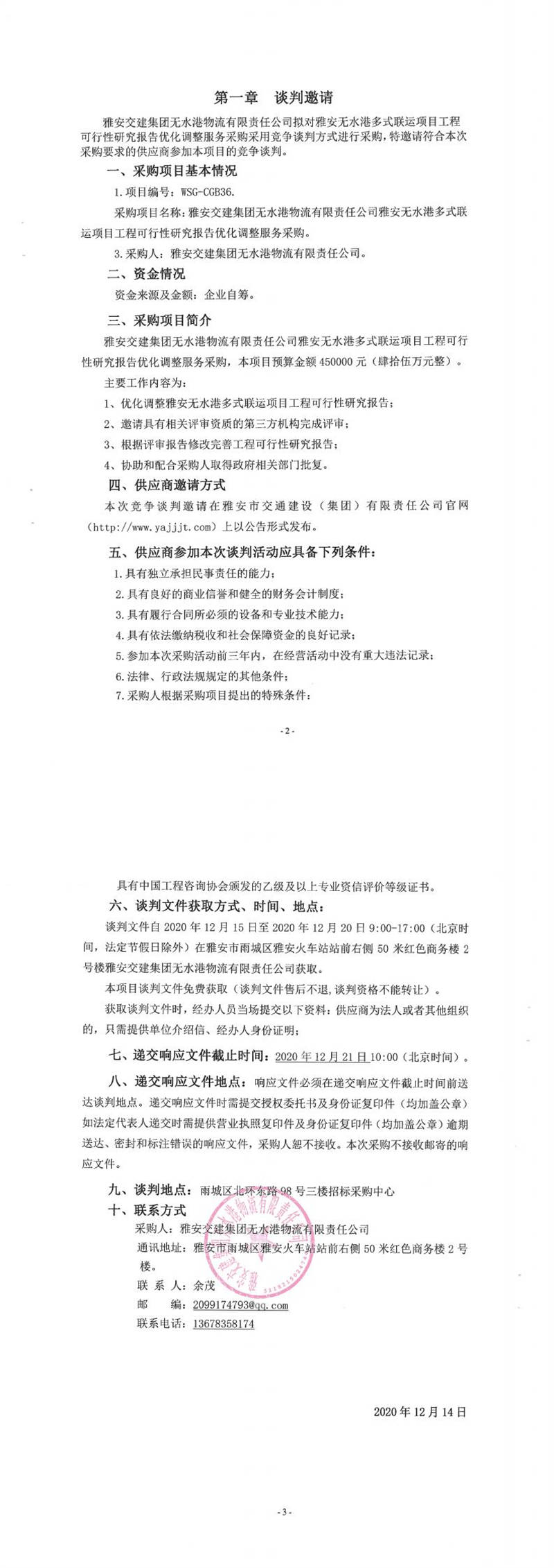 雅安交建集團(tuán)無水港物流有限責(zé)任公司雅安無水港多式聯(lián)運(yùn)項目工程可行性研究報告優(yōu)化調(diào)整服務(wù)采購競爭談判公告