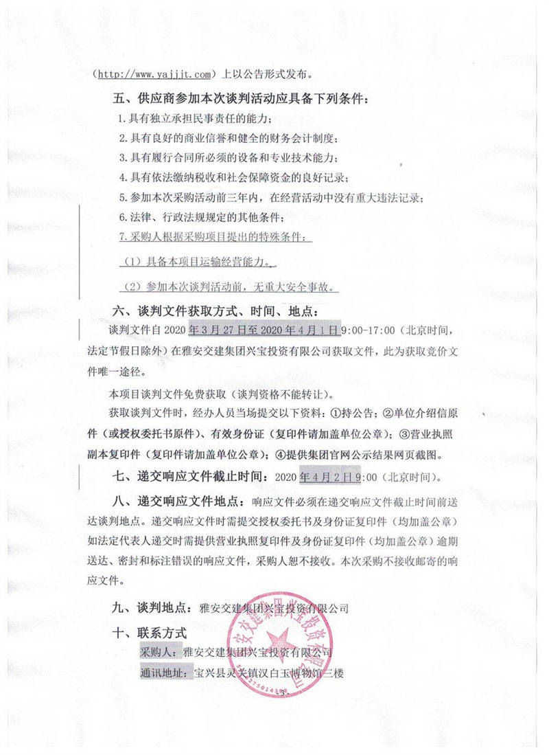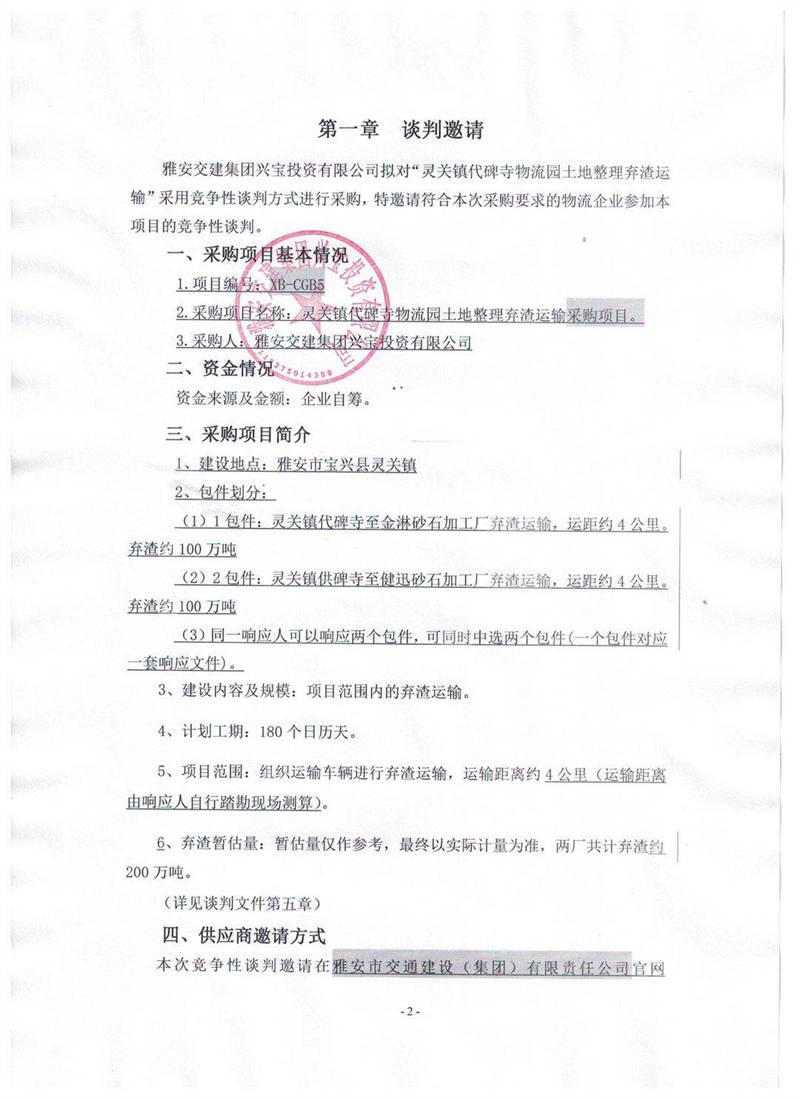 雅安交建集團興寶投資有限公司靈關(guān)鎮(zhèn)代碑寺物流園土地整理棄渣運輸采購項目競爭性談判公告