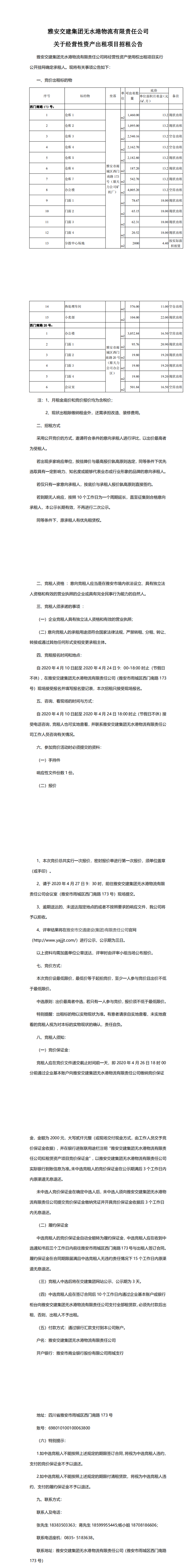 雅安交建集團無水港物流有限責(zé)任公司關(guān)于經(jīng)營性資產(chǎn)出租項目招租公告