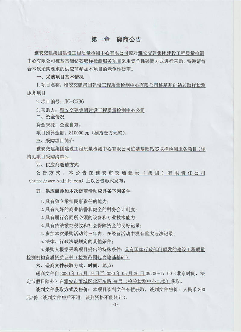 雅安交建集團(tuán)建設(shè)工程質(zhì)量檢測中心有限公司樁基基礎(chǔ)鉆芯取樣檢測服務(wù)項目競爭性磋商公告