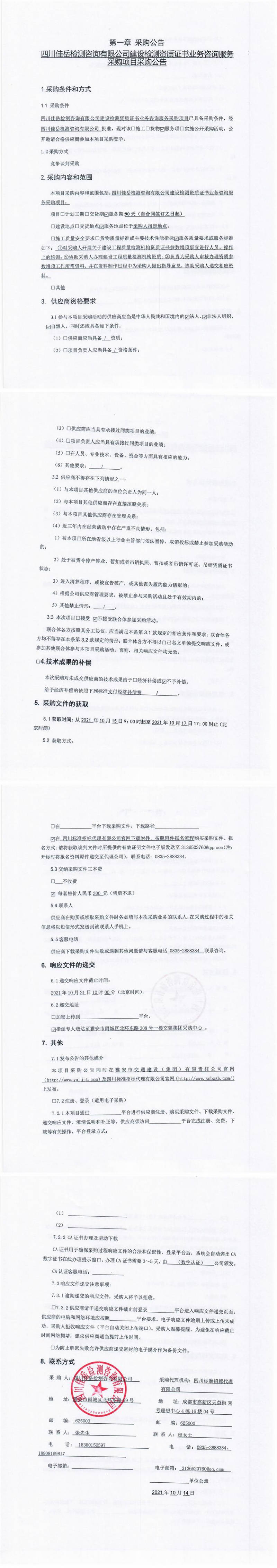四川佳岳檢測咨詢有限公司建設(shè)檢測資質(zhì)證書業(yè)務(wù)咨詢服務(wù)采購項(xiàng)目采購公告