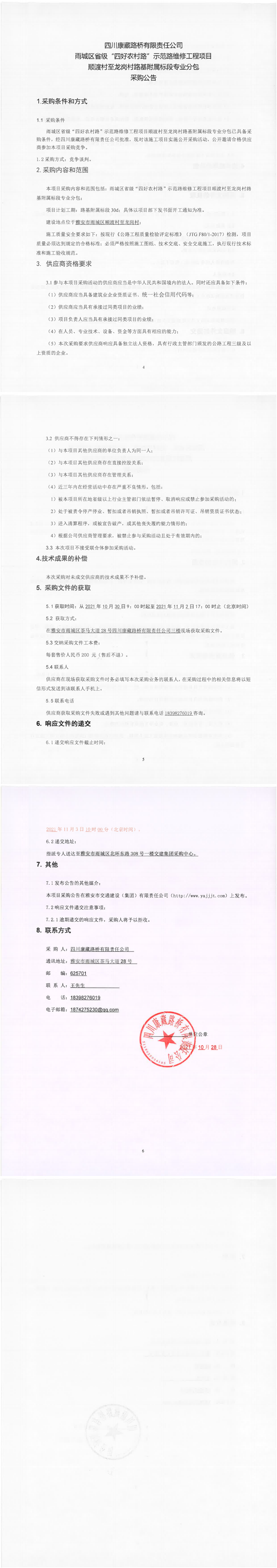 四川康藏路橋有限責任公司雨城區(qū)省級“四好農(nóng)村路”示范路維修工程項目順渡村至龍崗村路基附屬標段專業(yè)分包采購公告
