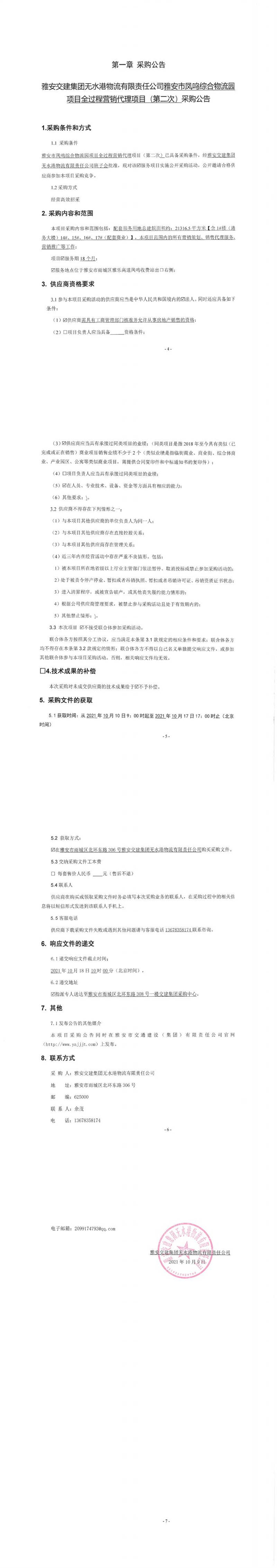 雅安交建集團無水港物流有限責(zé)任公司雅安市鳳鳴綜合物流園項目全過程營銷代理項目(第二次)采購公告