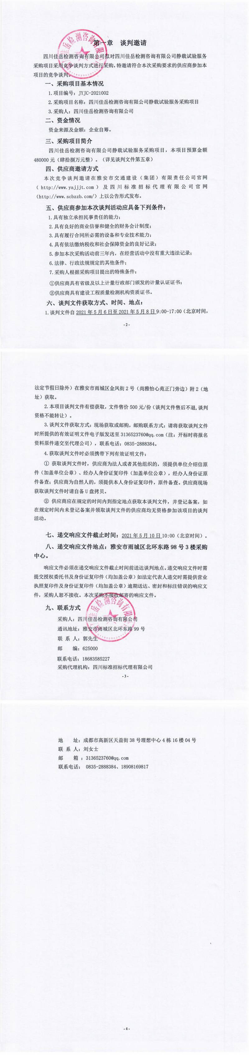 四川佳岳檢測咨詢有限公司靜載試驗服務采購項目競爭談判公告