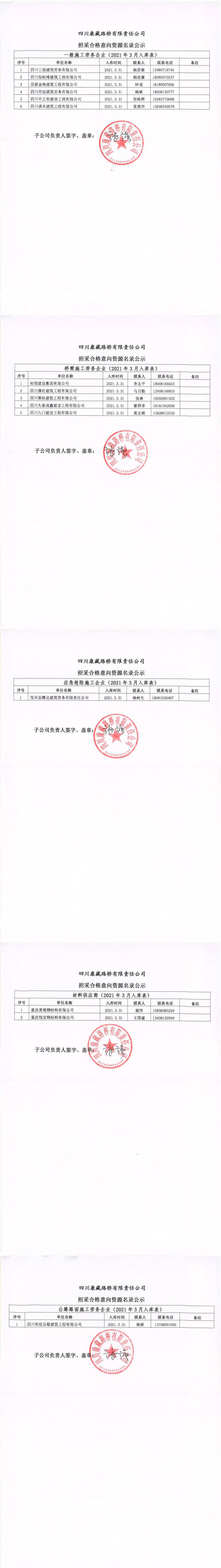 四川康藏路橋有限責(zé)任公司招采合格意向資源名錄公示