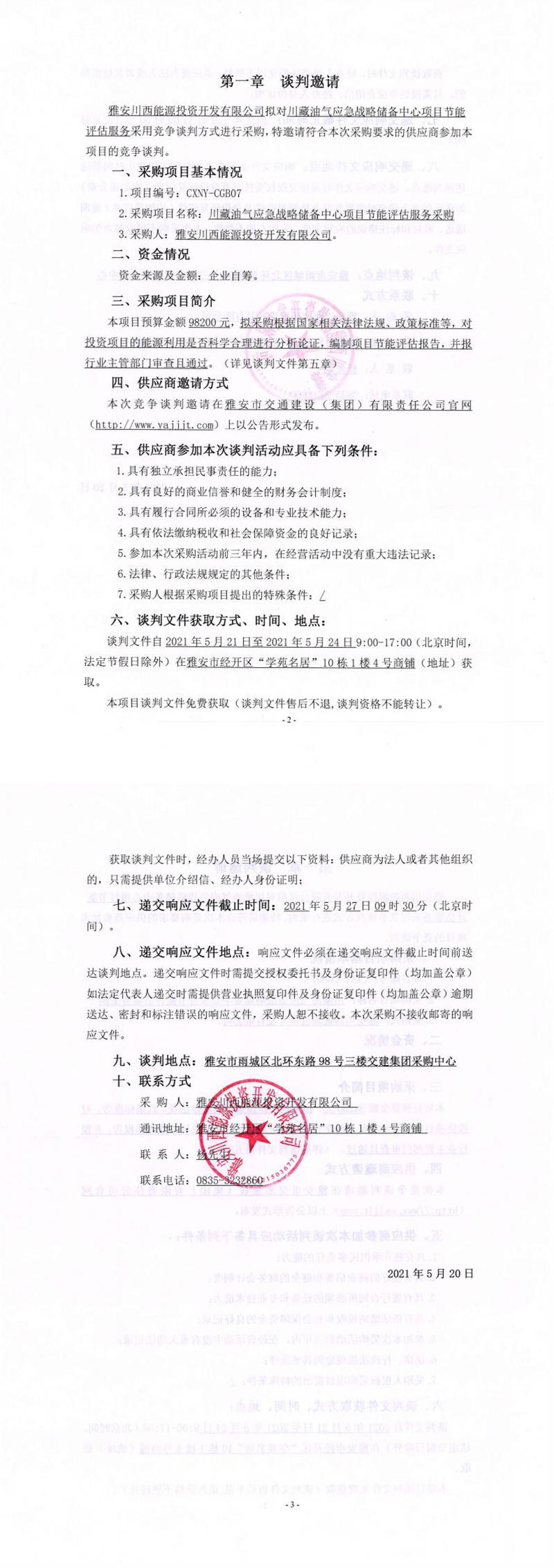 雅安川西能源投資開發(fā)有限公司川藏油氣應(yīng)急戰(zhàn)略儲(chǔ)備中心項(xiàng)目節(jié)能評(píng)估服務(wù)采購競(jìng)爭(zhēng)談判公告