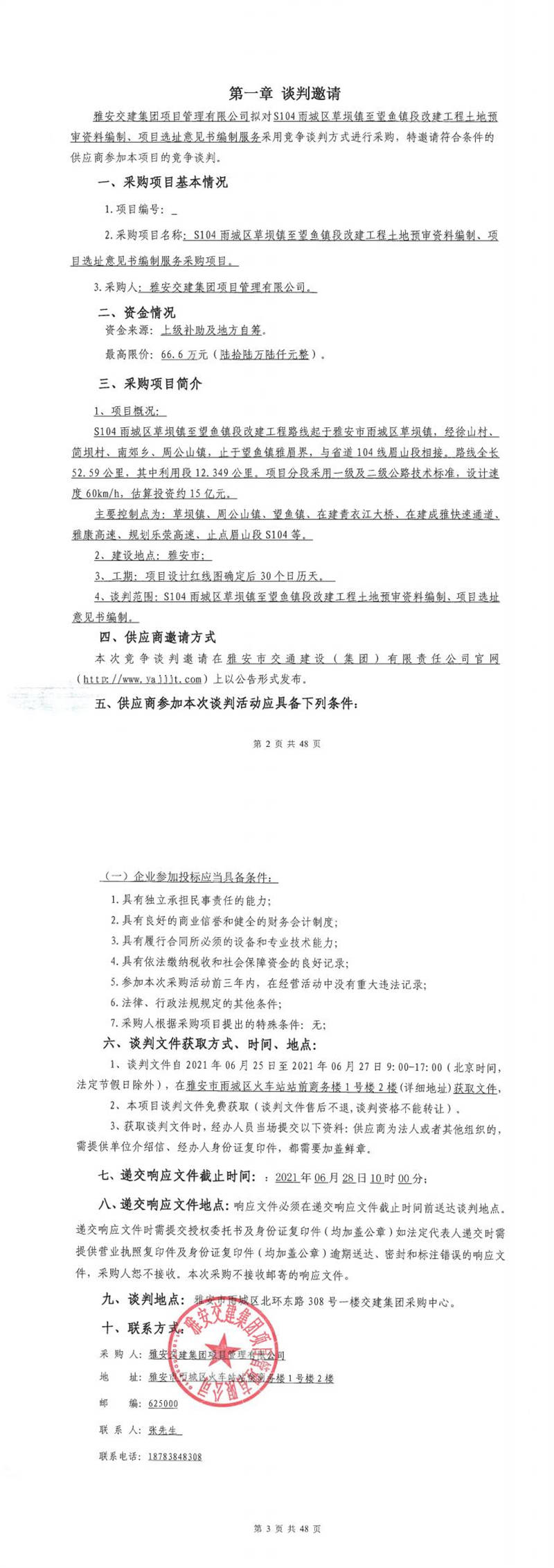 雅安交建集團(tuán)項(xiàng)目管理有限公司S104雨城區(qū)草壩鎮(zhèn)至望魚鎮(zhèn)段改建工程行洪論證與河勢(shì)穩(wěn)定評(píng)價(jià)報(bào)告編制服務(wù)采購項(xiàng)目競(jìng)爭談判公告