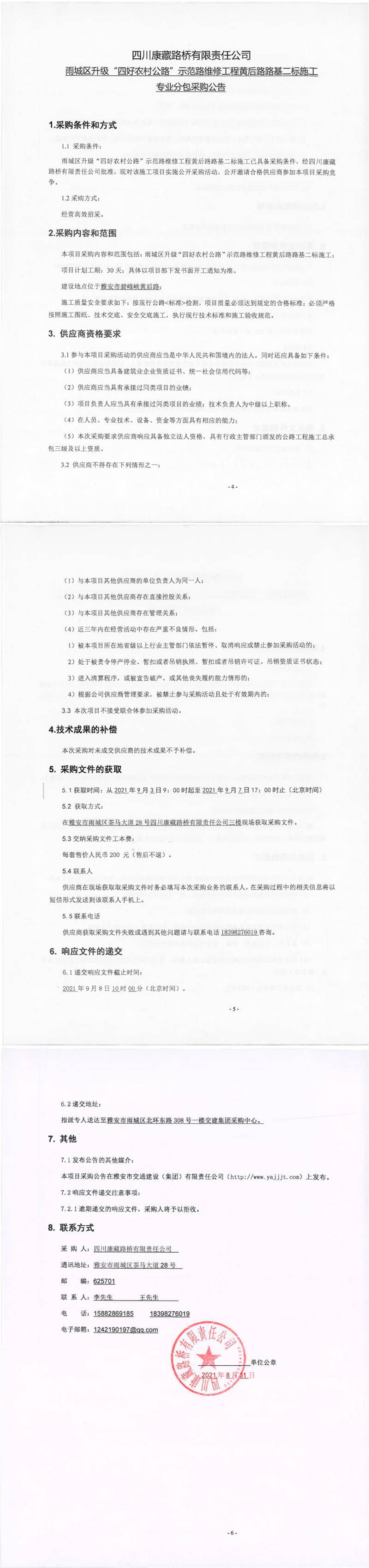 四川康藏路橋有限責任公司雨城區(qū)升級“四好農(nóng)村公路”示范路維修工程黃后路路基二標施工專業(yè)分包采購公告