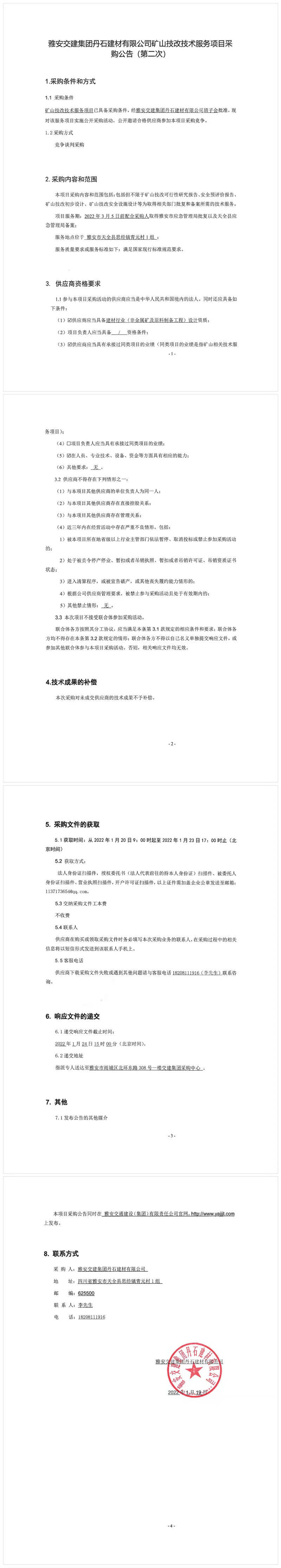 雅安交建集團丹石建材有限公司礦山技改技術(shù)服務項目采購公告(第二次)