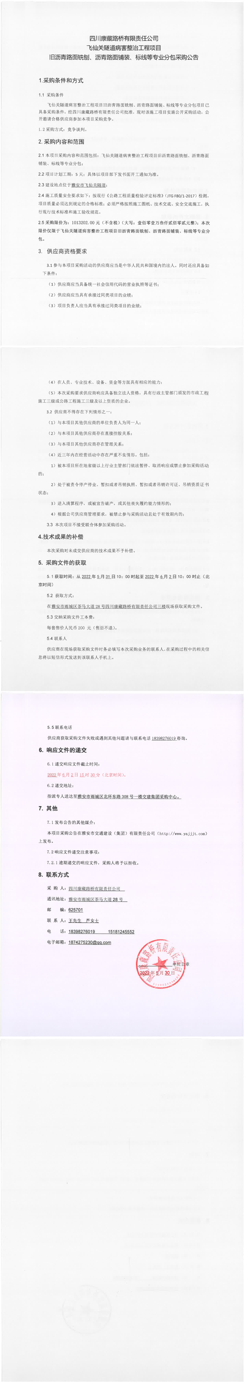 四川康藏路橋有限責(zé)任公司飛仙關(guān)隧道病害整治工程項目舊瀝青路面銑刨、瀝青路面鋪裝、標(biāo)線等專業(yè)分包采購公告