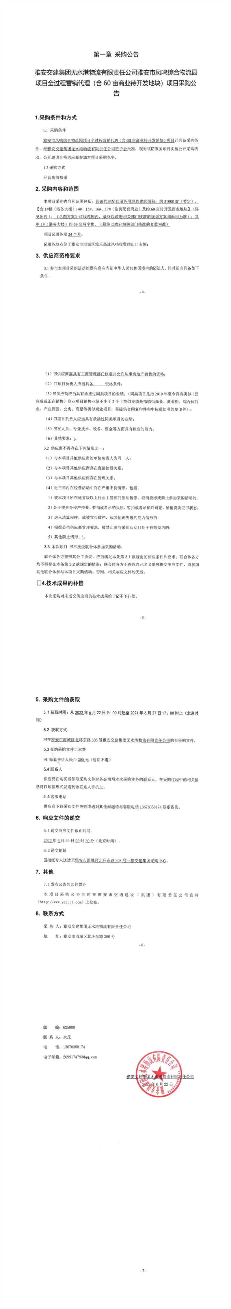 雅安交建集團(tuán)無水港物流有限責(zé)任公司雅安市鳳鳴綜合物流園項目全過程營銷代理(含60畝商業(yè)待開發(fā)地塊)項目采購公告