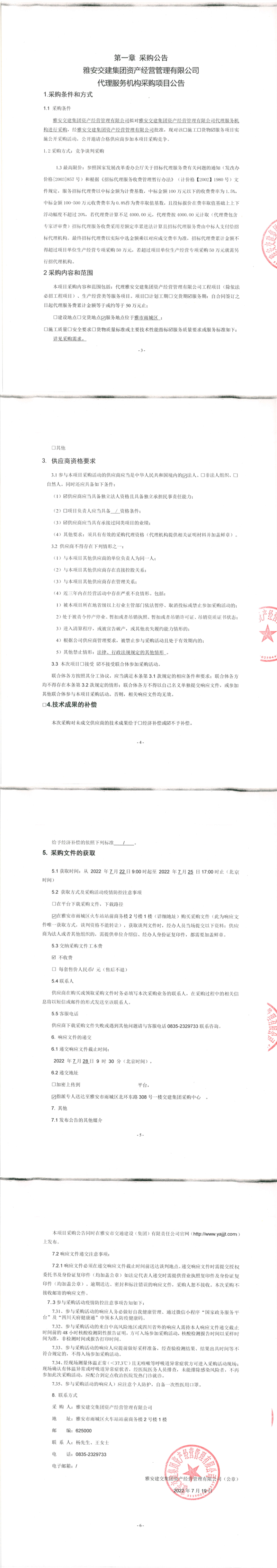 雅安交建集團(tuán)資產(chǎn)經(jīng)營管理有限公司代理服務(wù)機(jī)構(gòu)采購項(xiàng)目公告