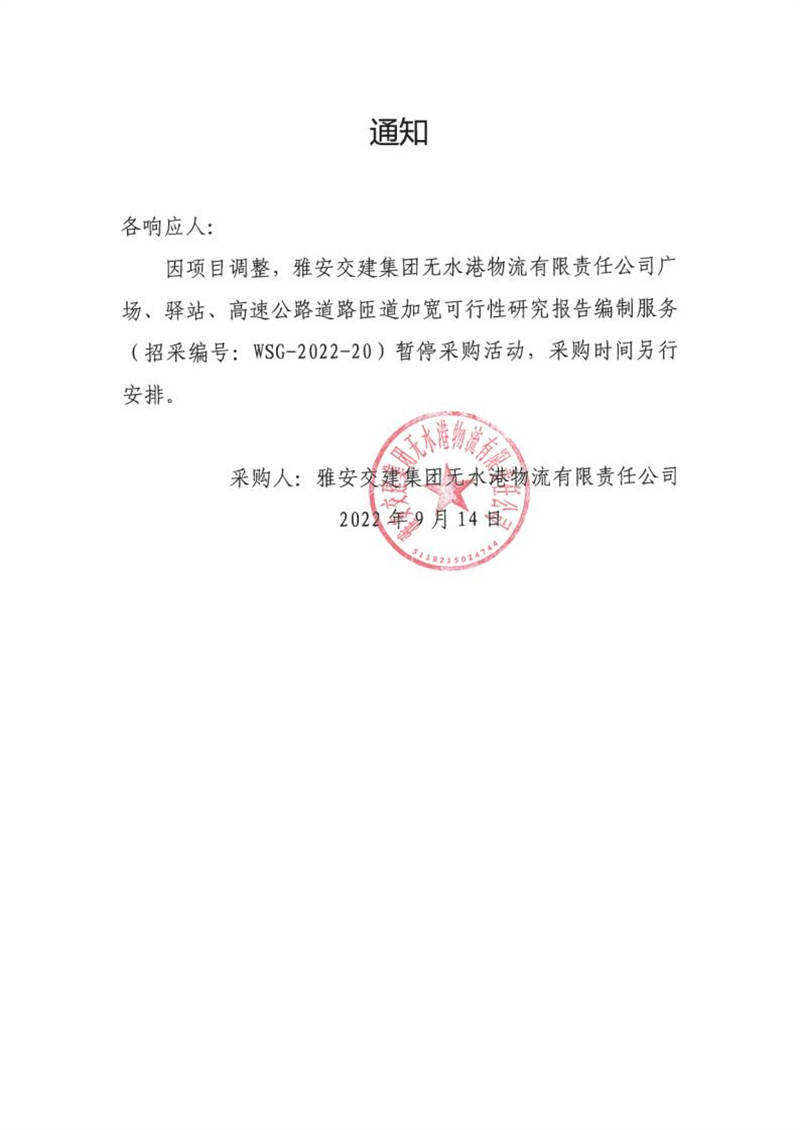 雅安交建集團無水港物流有限責任公司廣場、驛站、高速公路道路匝道加寬可行性研究報告編制服務(wù)采購通知