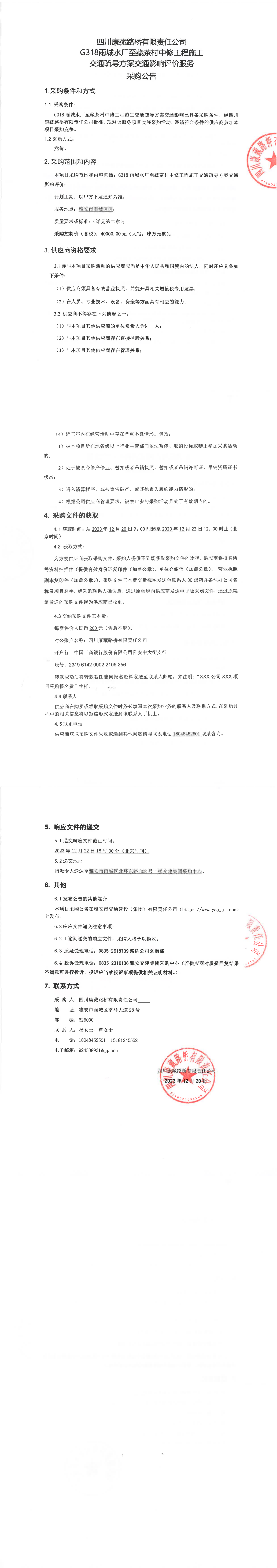 四川康藏路橋有限責任公司G318雨城水廠至藏茶村中修工程施工交通疏導方案交通影響評價服務(wù)采購公告