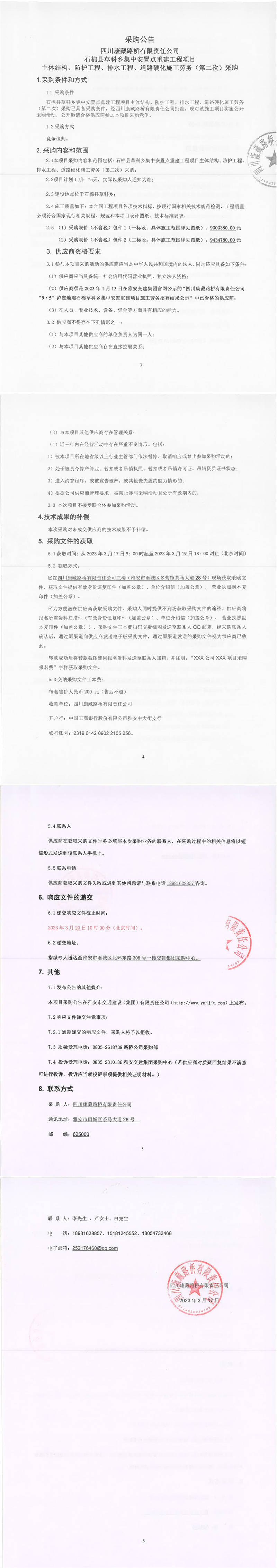 四川康藏路橋有限責(zé)任公司石棉草科鄉(xiāng)集中安置點(diǎn)重建工程項目主體結(jié)構(gòu)、防護(hù)工程、排水工程、道路硬化施工勞務(wù)(第二次)采購公告