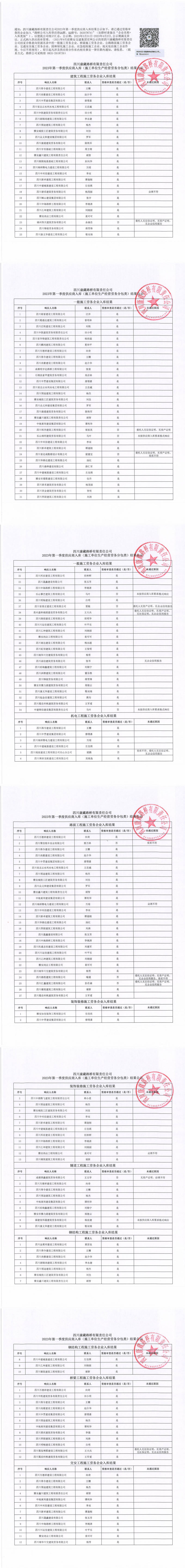 四川康藏路橋有限責任公司2023年第一季度供應商入庫(施工單位生產(chǎn)經(jīng)營勞務分包類)結(jié)果公示