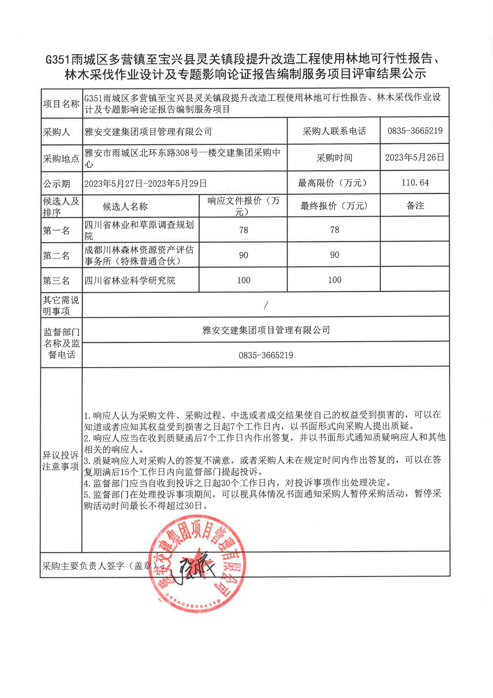 雅安交建集團(tuán)項(xiàng)目管理有限公司G351雨城區(qū)多營(yíng)鎮(zhèn)至寶興縣靈關(guān)鎮(zhèn)段提升改造工程使用林地可行性報(bào)告、林木采伐作業(yè)設(shè)計(jì)及專題影響論證報(bào)告編制服務(wù)項(xiàng)目評(píng)審結(jié)果公示