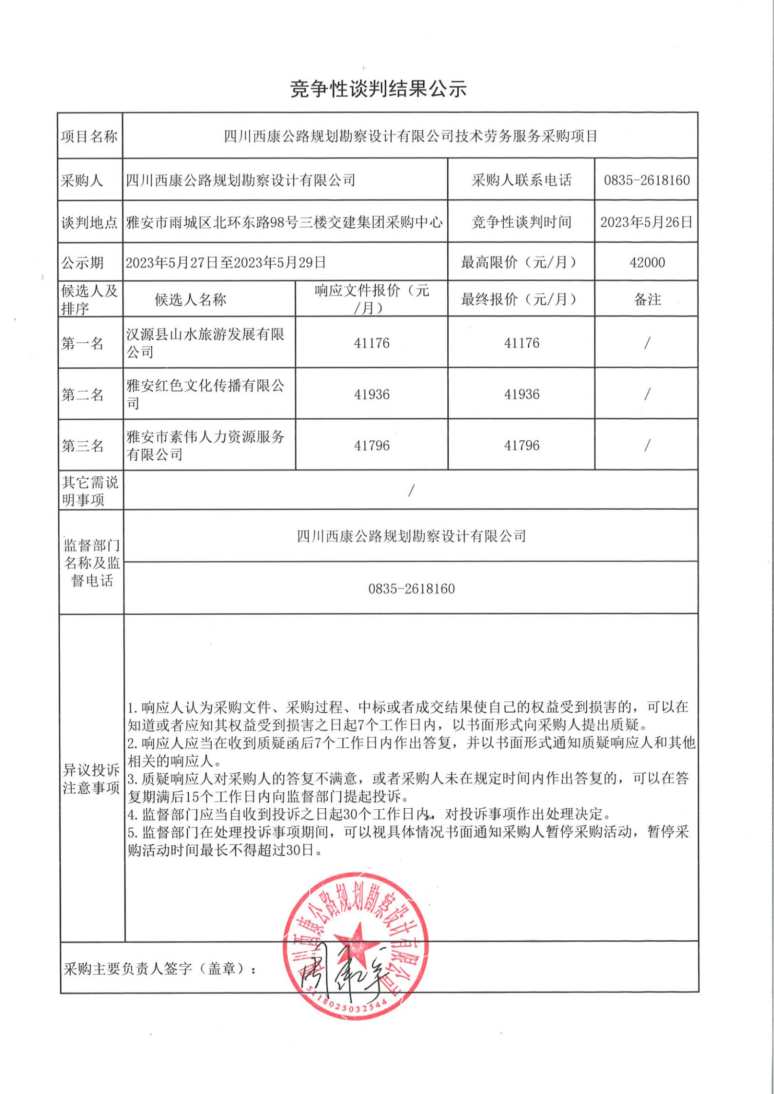 四川西康公路規(guī)劃勘察設(shè)計(jì)有限公司技術(shù)勞務(wù)服務(wù)采購結(jié)果公示