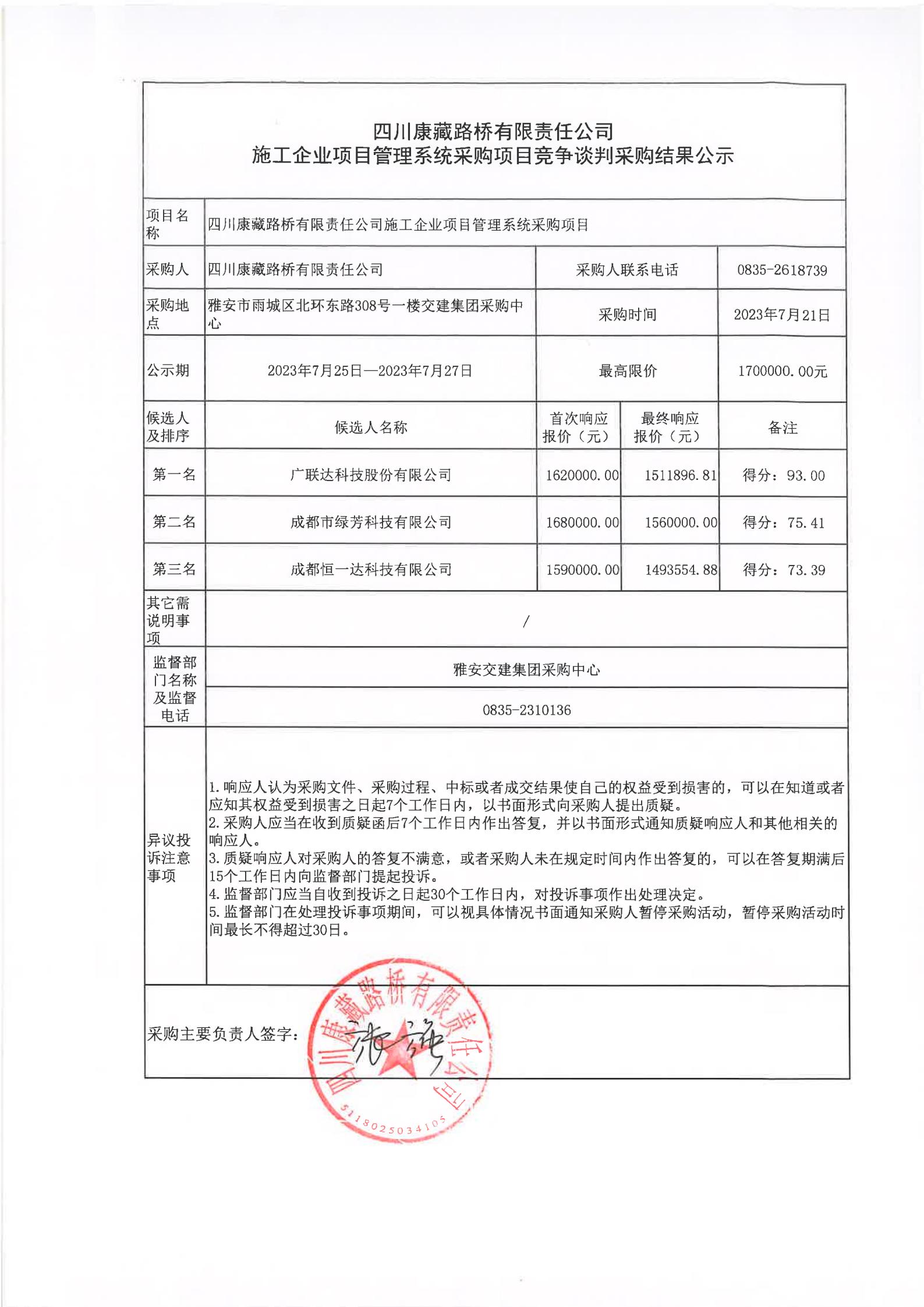 四川康藏路橋有限責(zé)任公司施工企業(yè)項目管理系統(tǒng)采購項目競爭談判采購結(jié)果公示