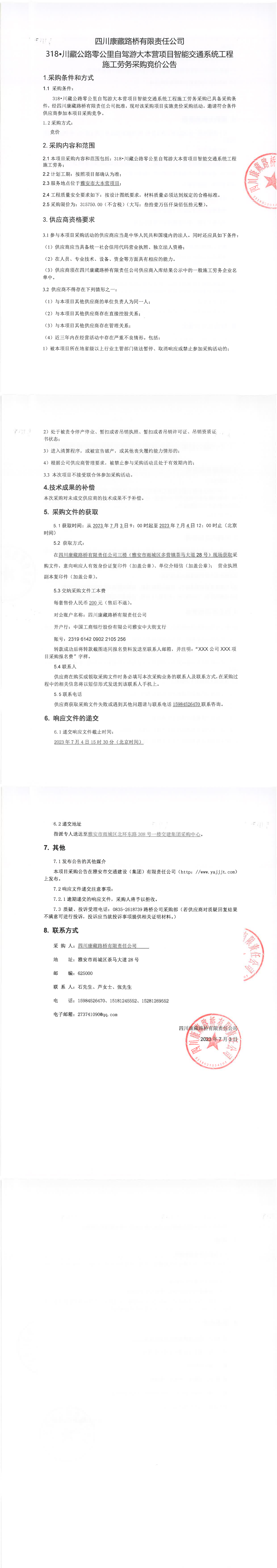 四川康藏路橋有限責(zé)任公司318·川藏公路零公里自駕游大本營項目智能交通系統(tǒng)工程施工勞務(wù)采購公告