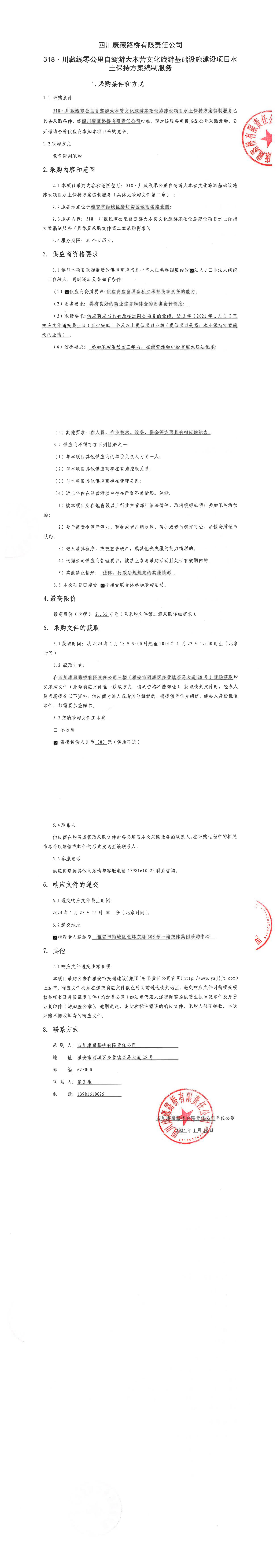 四川康藏路橋有限責(zé)任公司318·川藏線零公里自駕游大本營文化旅游基礎(chǔ)設(shè)施建設(shè)項(xiàng)目水土保持方案編制服務(wù)采購公告