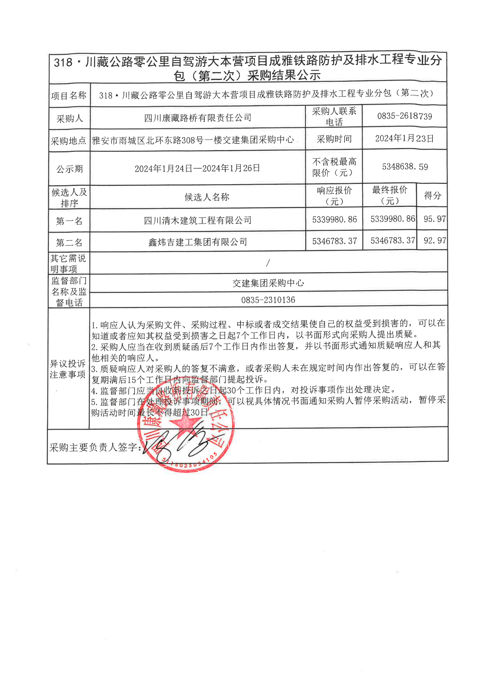 四川康藏路橋有限責(zé)任公司318·川藏公路零公里自駕游大本營(yíng)項(xiàng)目成雅鐵路防護(hù)及排水工程專(zhuān)業(yè)分包(第二次)采購(gòu)結(jié)果公示