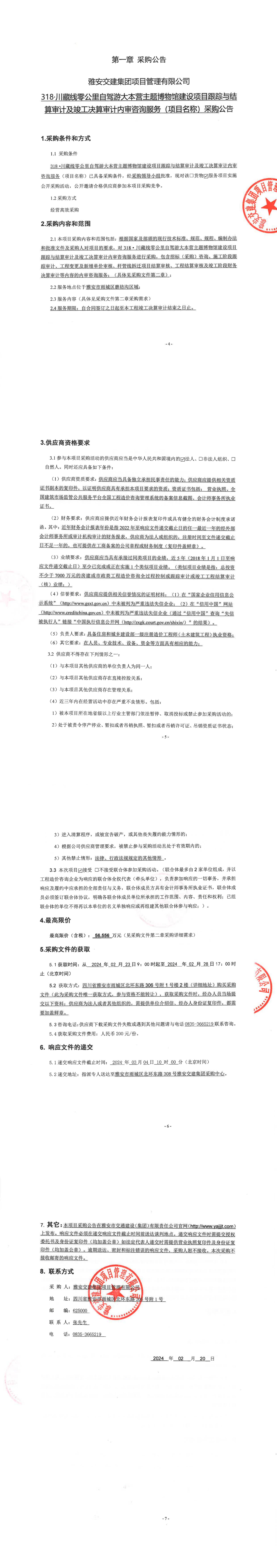 雅安交建集團(tuán)項(xiàng)目管理有限公司318·川藏線零公里自駕游大本營主題博物館建設(shè)項(xiàng)目跟蹤與結(jié)算審計及竣工決算審計內(nèi)審咨詢服務(wù)采購公告