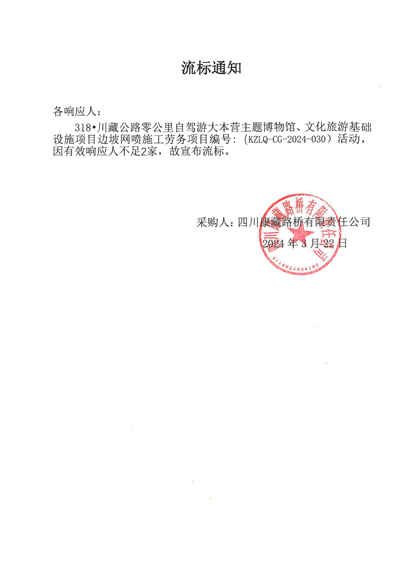 四川康藏路橋有限責(zé)任公司318·川藏公路零公里自駕游大本營主題博物館、文化旅游基礎(chǔ)設(shè)施項目邊坡網(wǎng)噴施工勞務(wù)流標(biāo)通知
