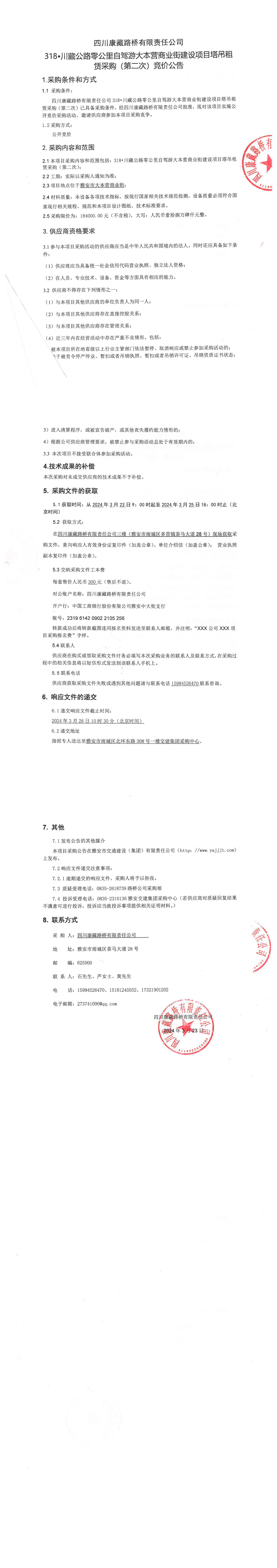 四川康藏路橋有限責(zé)任公司318•川藏公路零公里自駕游大本營商業(yè)街建設(shè)項(xiàng)目塔吊租賃采購(第二次)競價(jià)公告