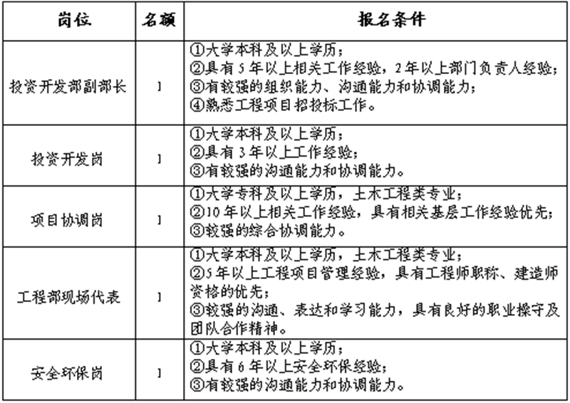 雅安交建集團資產(chǎn)經(jīng)營管理有限公司是雅安市重點國有企業(yè)雅安市交建集團下屬子公司,主要從事企業(yè)資產(chǎn)經(jīng)營管理;項目投資;土地整理等業(yè)務。根據(jù)公司發(fā)展需要,決定面向社會公開招聘5名工作人員,現(xiàn)將有關事項公告如下: