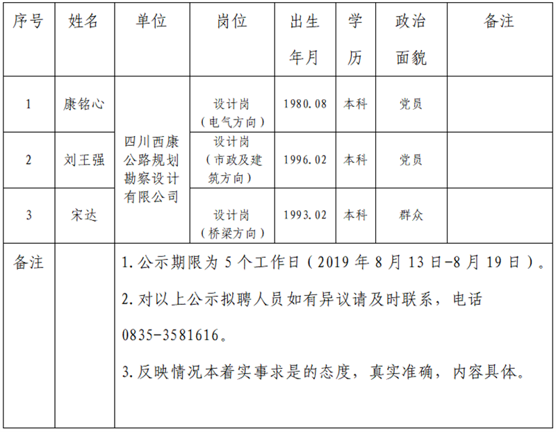 雅安交建集團(tuán)子公司擬聘用人員公示(勘察設(shè)計公司)