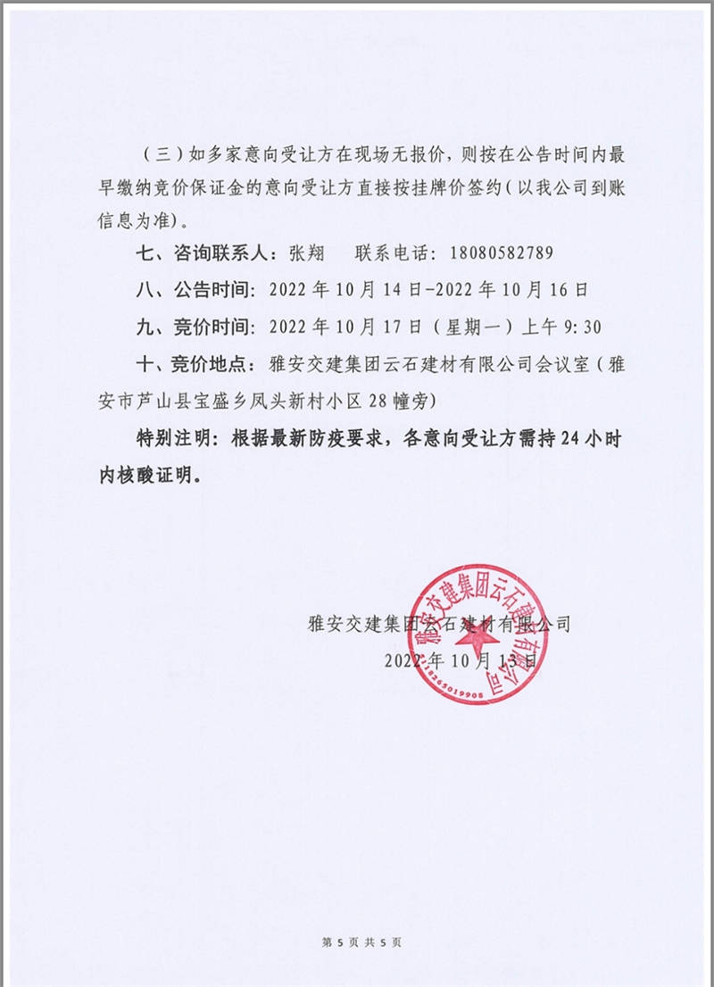 雅安交建集團(tuán)云石建材公司成品料競(jìng)價(jià)銷售公告10.13