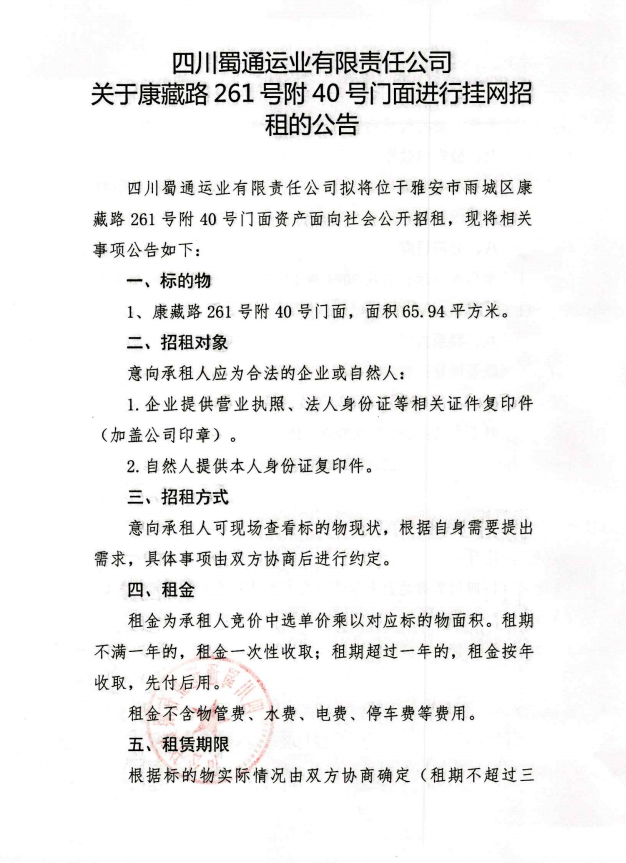 ËÄ´¨Êñͨß\˜I(y¨¨)ÓÐÏÞØŸ(z¨¦)Èι«Ë¾ êP(gu¨¡n)ÓÚ¿µ²ØÂ·261Ì–¸½40Ì–éTÃæßMÐÐ’ì¾W(w¨£ng)ÕÐ×âµÄ¹«¸æ
