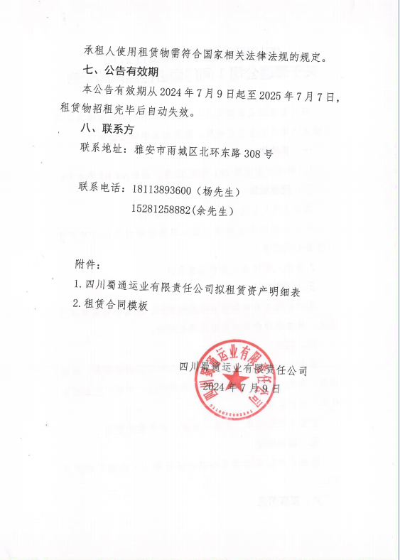四川蜀通運(yùn)業(yè)有限責(zé)任公司關(guān)于蜀通公司1間門面進(jìn)行掛網(wǎng)的公告附件