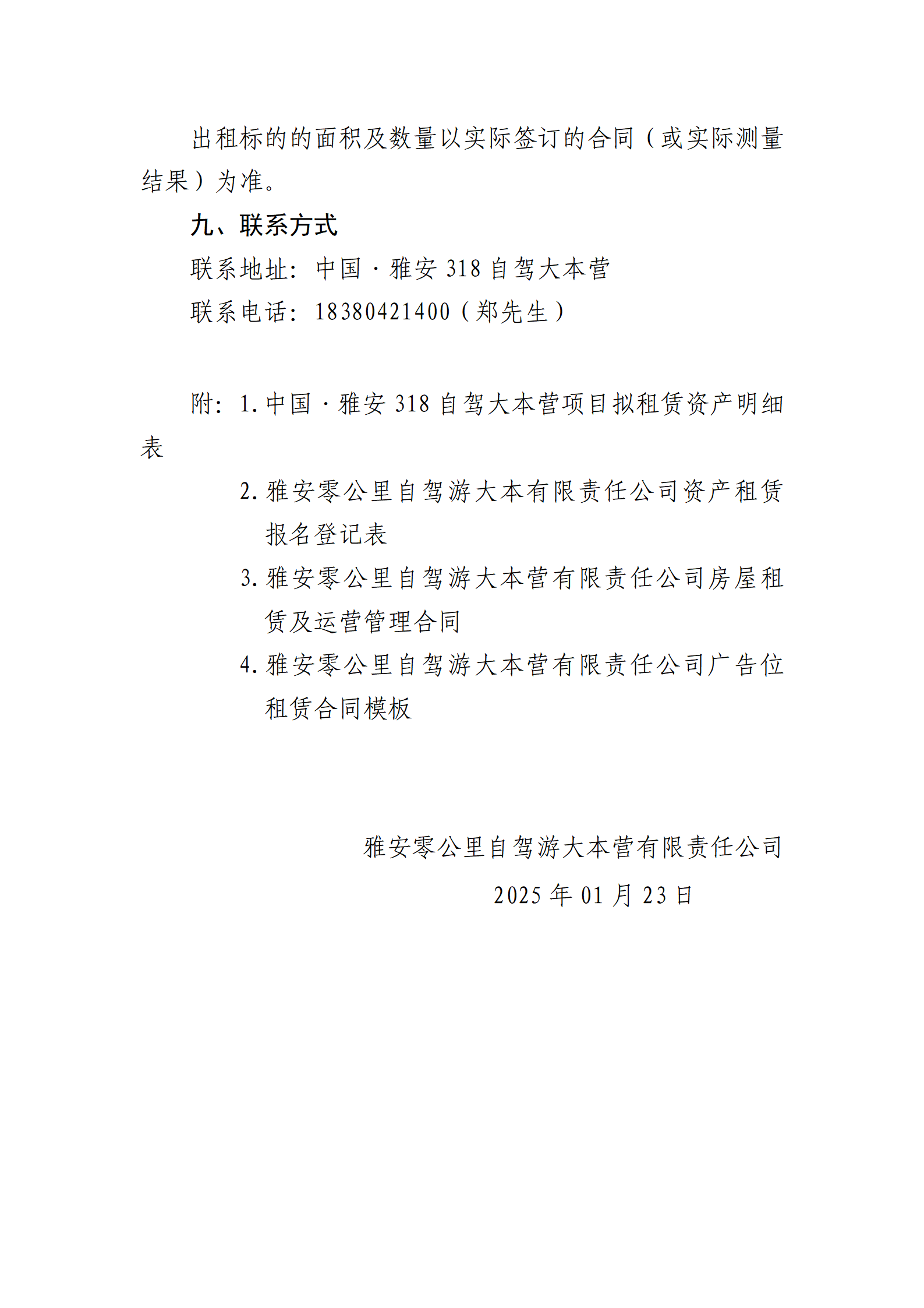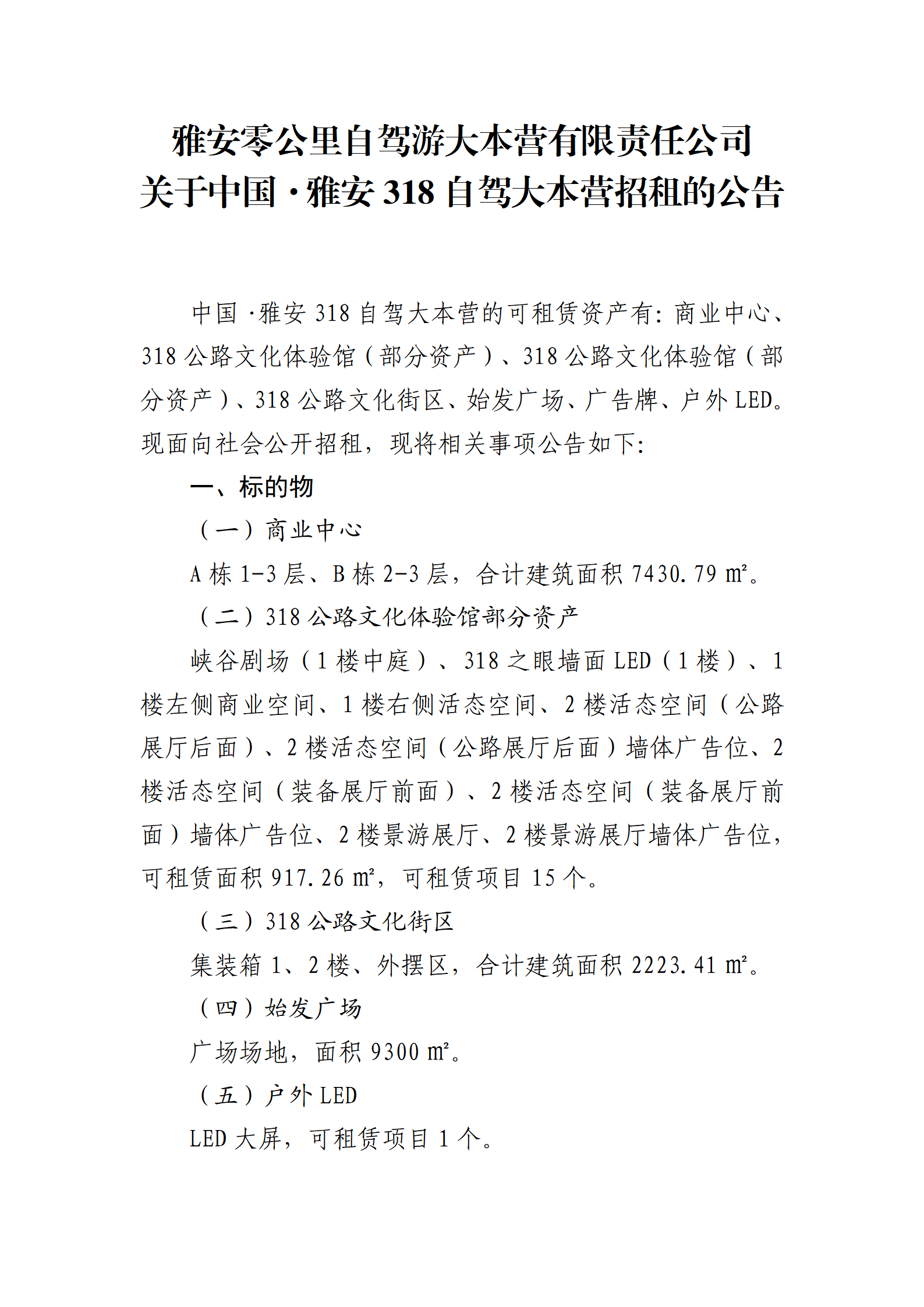 雅安零公里自駕游大本營有限責(zé)任公司 關(guān)于中國·雅安318自駕大本營招租的公告