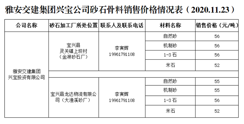 ÑŰ²½»½¨¼¯ˆF(tu¨¢n)ÅdŒš¹«Ë¾É°Ê¯¹ÇÁÏäNÊÛƒr¸ñÇé›r±í£¨2020.11.23£©